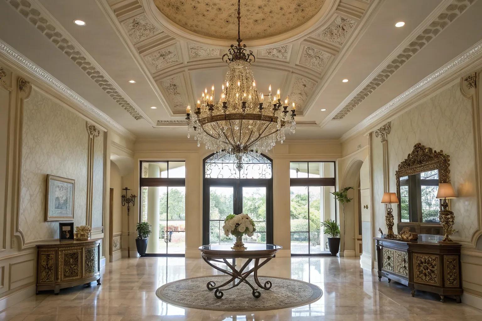 - Cascading Crystal Chandelier: Sparkle and sophistication in one centerpiece.