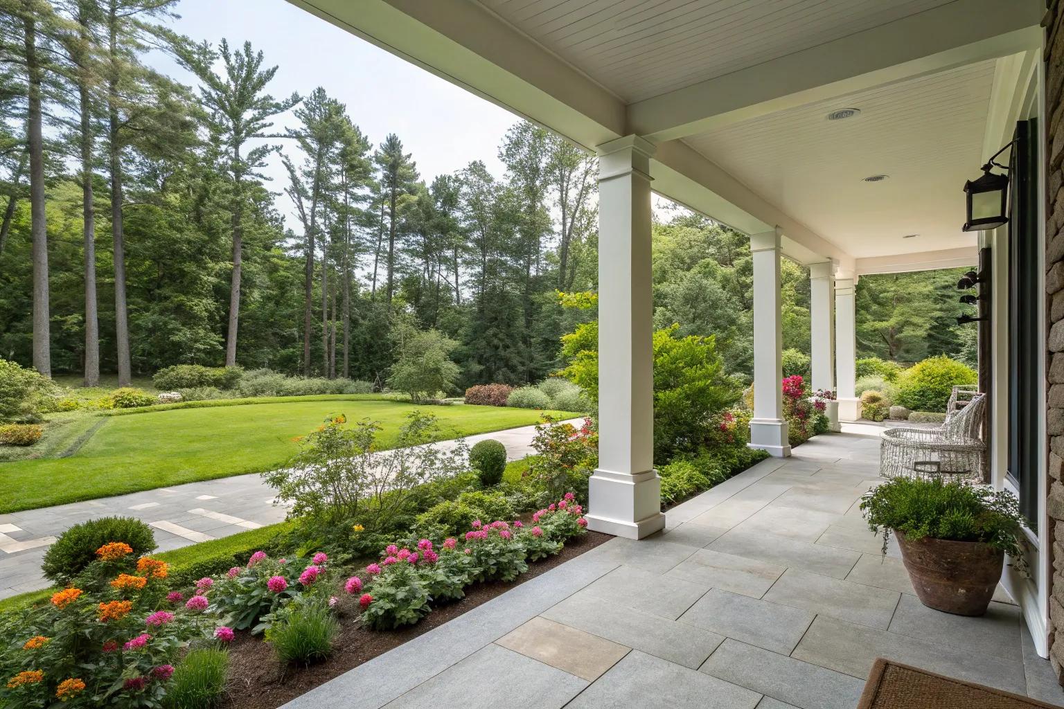 Stone cladding at the base of your square columns introduces a robust and natural element. This detail anchors the columns visually and adds a sense of permanence. Selecting stone that complements your home’s existing masonry ensures a harmonious and polished appearance.
