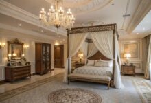 In rooms with lofty ceilings, incorporating tall headboards or layered drapery accentuates vertical space, adding drama and elegance. These design choices help balance the room’s proportions and create a sense of grandeur.