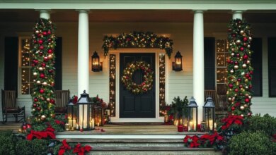 - Hanging Lanterns with Warm Light: Elegant and cozy lighting solutions.