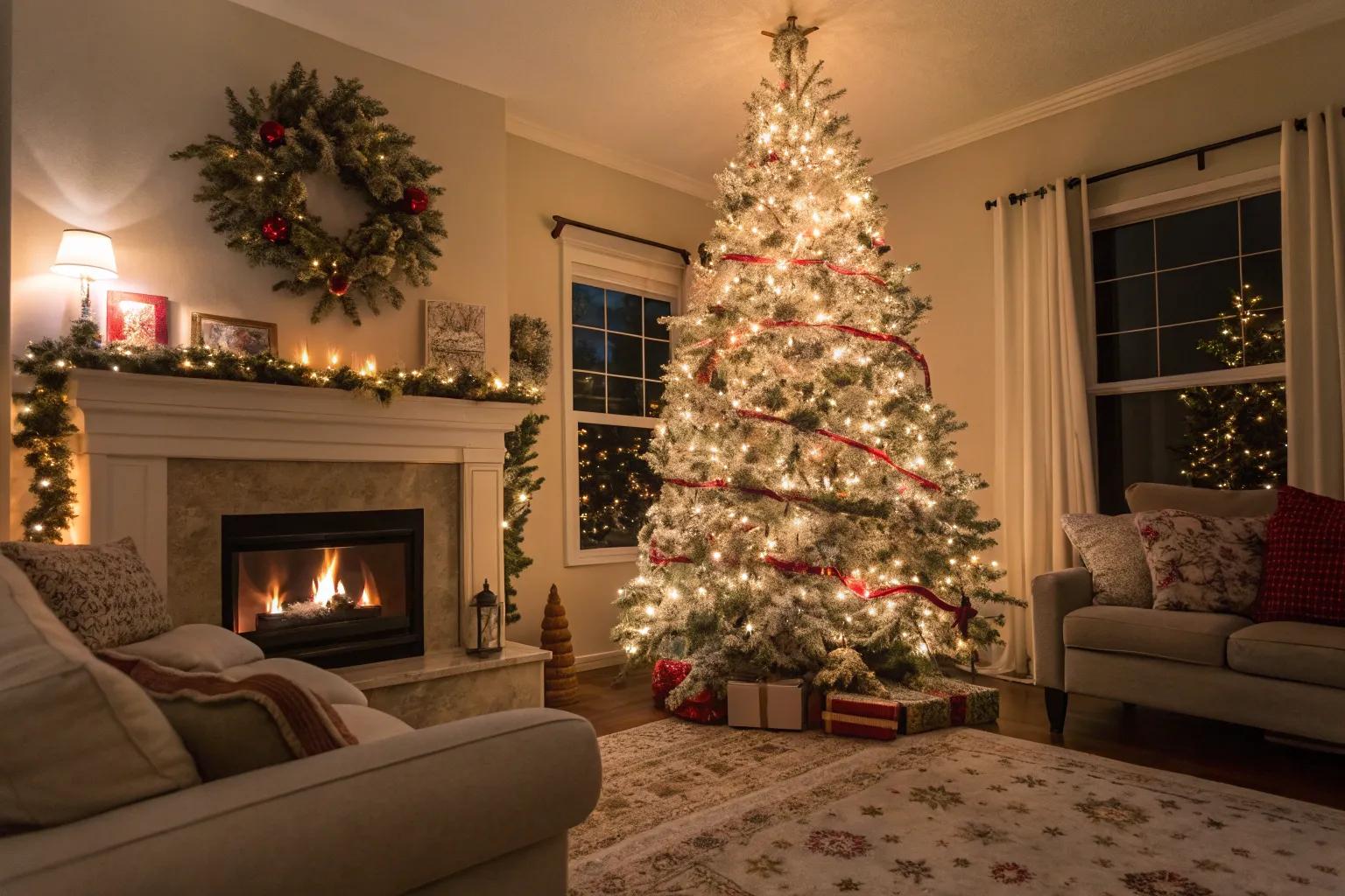 Blend neutral colors with delicate glitter or pearl finishes for a chic yet understated holiday tree. This style emphasizes quality over quantity, focusing on a few exquisite ornaments that add shimmer without overwhelming the natural flocking. The result is a graceful and sophisticated holiday centerpiece.
