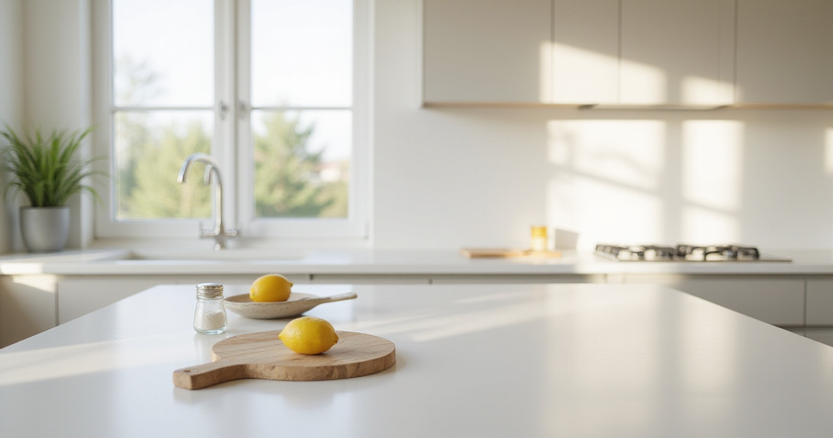 Minimalist kitchen countertop with lemon and salt cellar