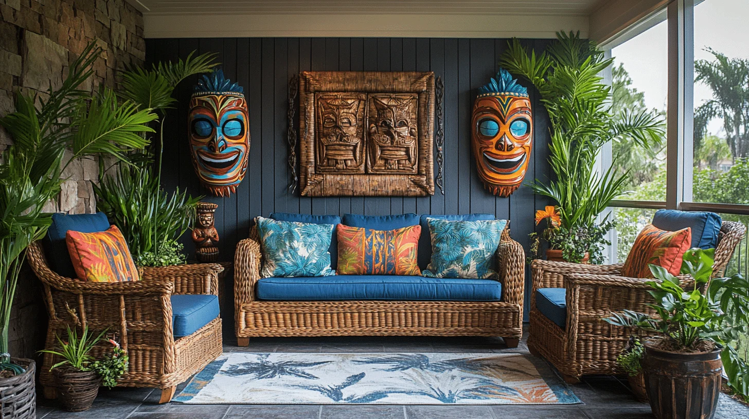 Tropical Tiki Oasis channels the vibrant spirit of island life into quirky home decor. Featuring bamboo furnishings, colorful tiki masks, and lush tropical plants, this style creates a lively and relaxing atmosphere. The bright palette and island-inspired accessories make it an ideal choice for those who want to enjoy a perpetual summer vibe and a playful, exotic retreat at home.