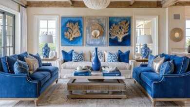 Refreshing Fjord-Inspired Farmhouse interiors bring the essence of fjord landscapes indoors with cool blues, greens, and reflective surfaces reminiscent of water. This style emphasizes sustainability and local craftsmanship, featuring open layouts and minimalistic decor that highlight natural beauty without clutter.