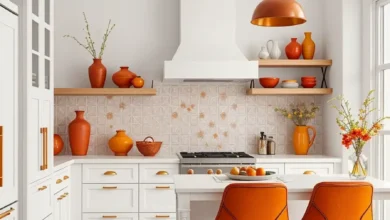 Introduce a lively and modern vibe by pairing sage green cabinetry with crisp white contrasts. Sleek hardware and subtle geometric patterns on backsplashes or textiles can refresh your kitchen’s look affordably.