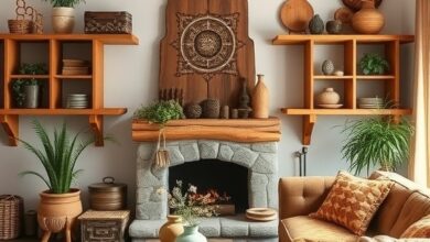 Combine farmhouse warmth with bohemian style in a Rustic Farmhouse Boho Comfort Spot, using weathered wood, eclectic accents, and plush fabrics to craft a welcoming corner.