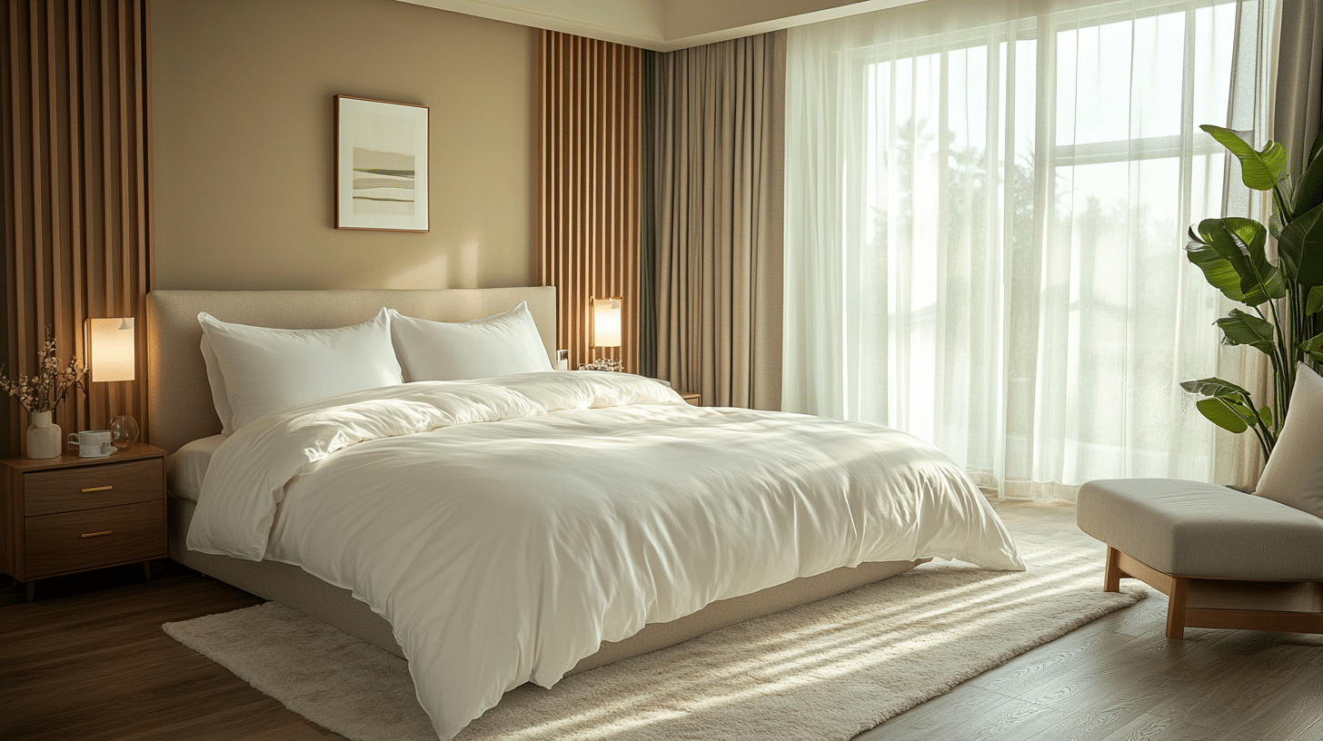 The Misty Rest Guest Room uses soft gray tones and plush bedding to create a welcoming and restful environment. Budget-friendly muted colors and textures provide a stylish yet affordable retreat for guests, ensuring comfort and elegance.