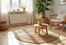 Emphasizing balance and simplicity, Walnut Harmony Hideaway cabinets are paired with muted tones and minimalistic decor. This style highlights the natural beauty of walnut wood, creating a warm, organized kitchen perfect for minimalists who appreciate cozy elegance.