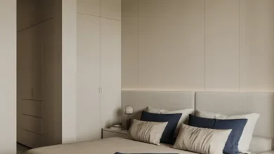 Incorporate delicate silver details to evoke a calm and elegant ambiance. Combine plush fabrics with modern furnishings to create a fresh contrast that remains affordable. This airy design invites relaxation and sophistication.
