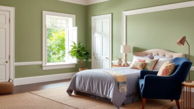 Adopt deep azure tones to evoke a regal yet calming atmosphere. Pair with light furniture and metallic accents to keep the room feeling open and affordable. This design offers a tranquil and sophisticated retreat.
