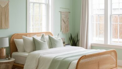 Create a calming environment with gentle pastel shades on walls and furnishings. Incorporate light wood furniture and plush textiles to maintain a fresh and affordable look. This tranquil space invites relaxation and serenity.