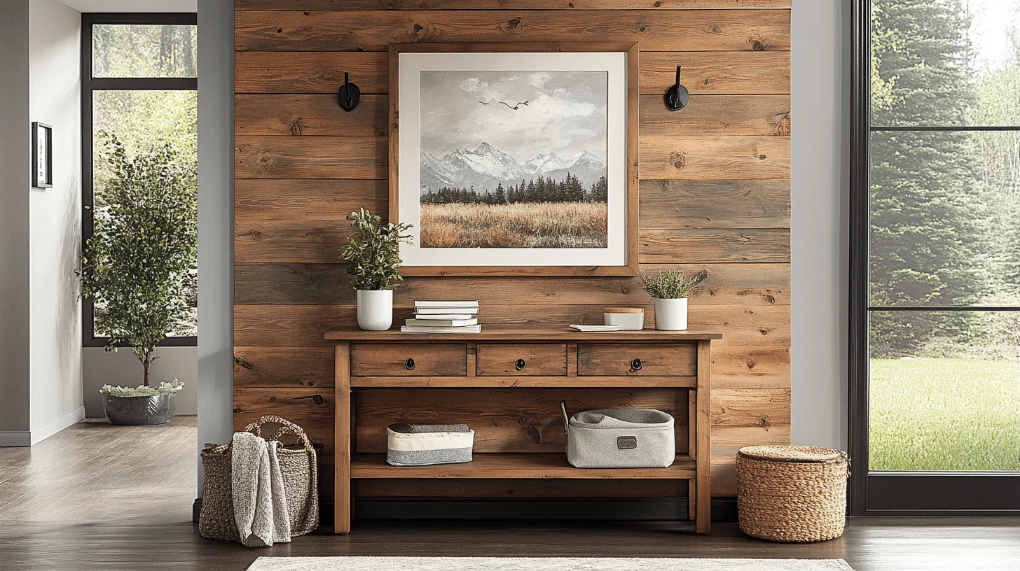 Incorporate a slim bench with hidden storage compartments to serve as both a seating area and a place to stow seasonal items. This clever design keeps clutter out of sight and provides a comfortable spot for putting on shoes or setting down bags.