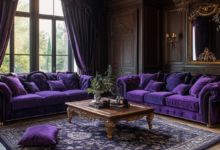Velvet Dusk Themes highlight the sumptuous texture and deep hues of velvet, evoking the quiet solitude of night. Velvet appears in upholstery, curtains, and even wall treatments, creating a tactile, inviting atmosphere. Dark shades of navy, black, and rich purple dominate, accented by silver or crystal decor that adds sparkle and contrast to the plush surroundings.