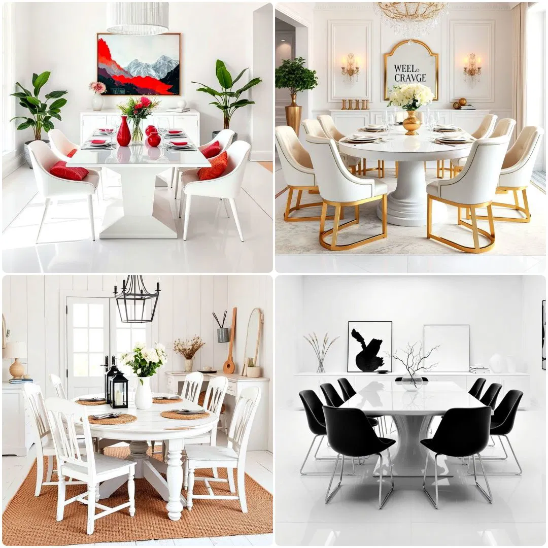 - Luxurious Touches: Marble, gold, and glass elevate white dining rooms with elegance.