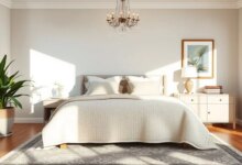 Thoughtful lighting choices can transform your bedroom’s atmosphere. Consider installing a stylish pendant light or chandelier as a centerpiece, paired with wall sconces for balanced illumination.