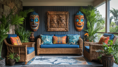 Transform your outdoor space into a lively tropical haven that transports guests to an island paradise. Use bright, patterned tablecloths and tiki torches to set the scene, complemented by abundant greenery such as palms and ferns.