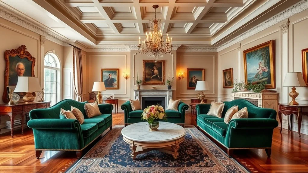 Elevate your living room into a sophisticated sanctuary by embracing classical design elements that celebrate enduring elegance. Integrate vintage furnishings and timeless armchairs to combine comfort with style. Gentle hues paired with sumptuous draperies foster a peaceful ambiance, while detailed crown molding and plush fabrics add layers of refinement. Introducing lush indoor plants infuses vitality and freshness. Explore how these components harmonize to uplift your living space, crafting an environment that exudes both charm and distinction.