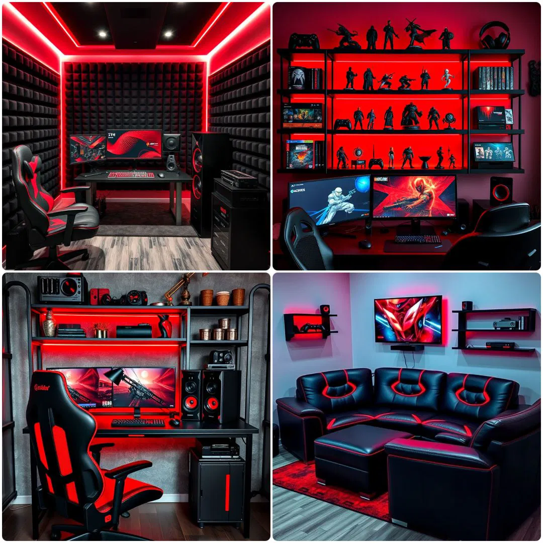 Combining red and black in your gaming setup creates a visually striking and highly functional environment that enhances your gaming experience. From minimalist designs to elaborate RGB lighting and ergonomic furniture, these ideas cater to diverse preferences and budgets. Incorporating elements such as LED accents, custom PCs, and soundproofing can boost both comfort and performance. Whether you’re a casual player or a professional streamer, these concepts offer a comprehensive guide to crafting a gaming space that reflects your passion and style.